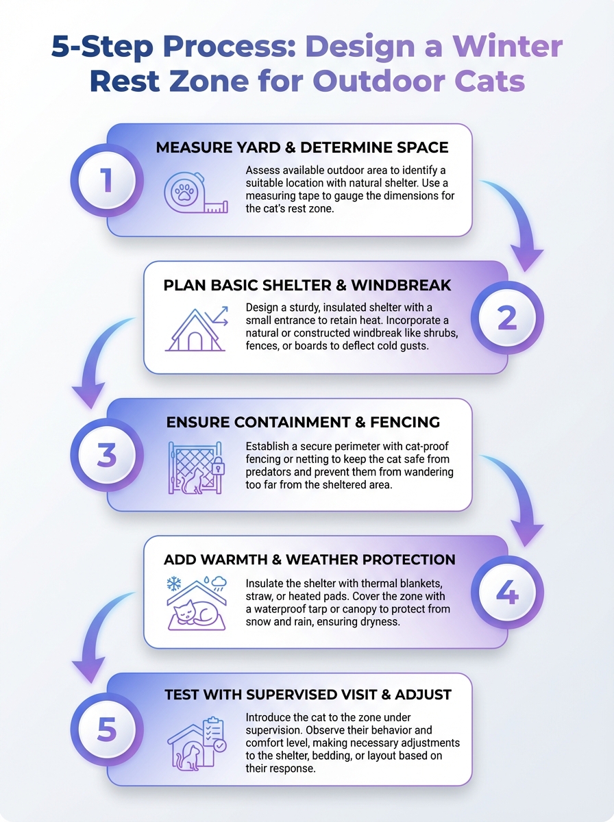 Una guía práctica de 5 pasos para crear zonas de descanso al aire libre protegidas para gatos en climas fríos. Aprenda cómo diseñar lugares a prueba de viento e aislados que mantengan a sus amigos felinos seguros y cómodos.